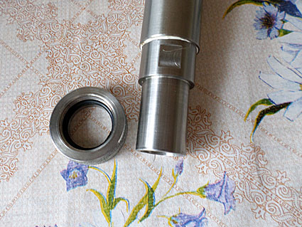 Обратный холодильник сделан из нержавейки. Устройство очень простое, но без него при перегонке идет спирт максимальной крепостью только 85%. Вход воды от холодильника через верхний штуцер, выход через нижний.