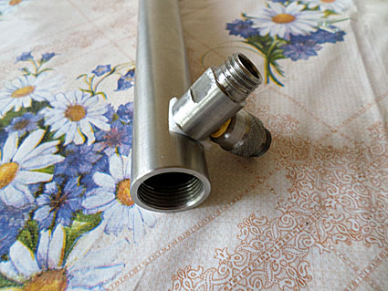 Корпус из трубки длинной 440 мм с наружным диаметром 32 мм, внутренним 25 мм. С обоих сторон нарезана внутренняя резьба. В нее вкручиваются штуцер для подсоединения к перегонному кубу и обратный холодильник. Сбоку трубки снята небольшая лыска, там же просверлено отверстие, в котором нарезана резьба. В нее вкручен специальный штуцер в который устанавливаются цифровой термометр и холодильник.